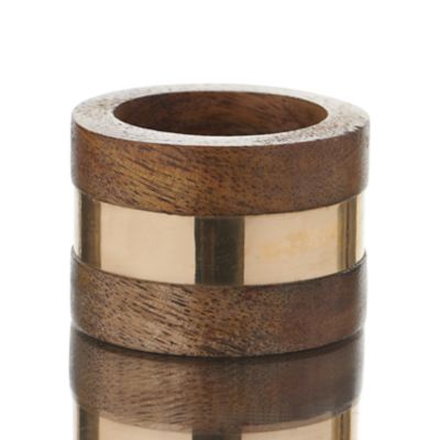 Gold Band Teak Wood Napkin Ring
